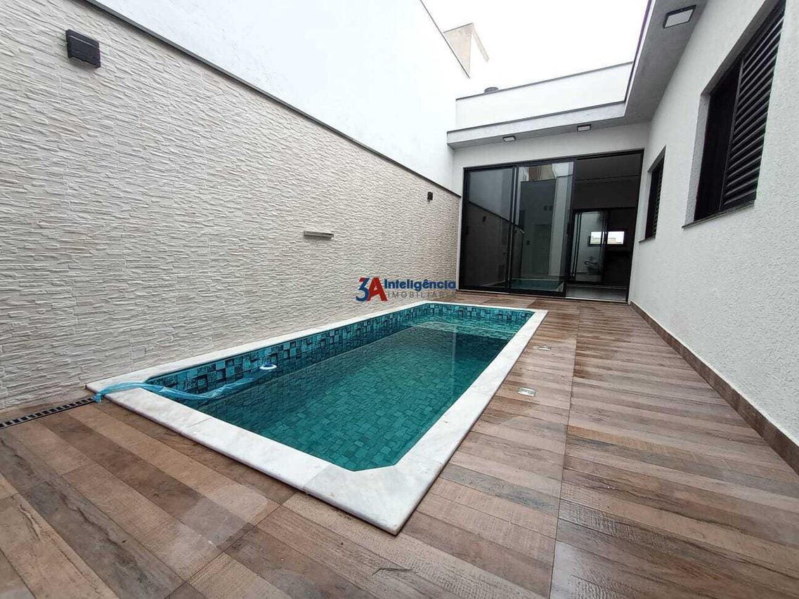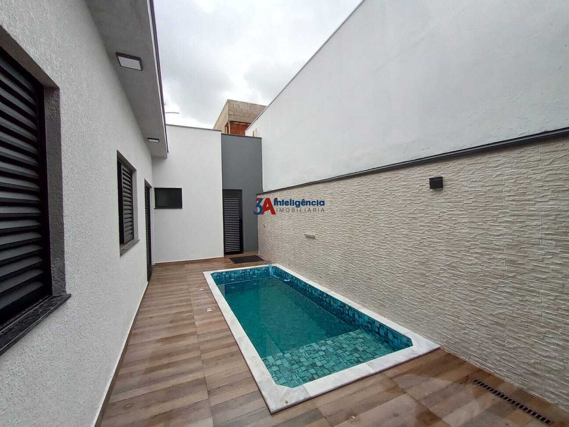 Excelente casa térrea com piscina no condomínio Reserva Ipanema, na zona norte de Sorocaba, com 145m² de área construída em um terreno de 200m². Com 3 dormitórios sendo 1 suíte com closet, sala com pé direito de 4m de altura, cozinha, área gourmet, lavanderia, depósito, 3 banheiros e 2 vagas de garagem.