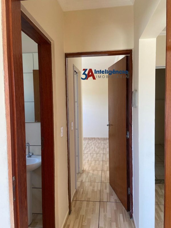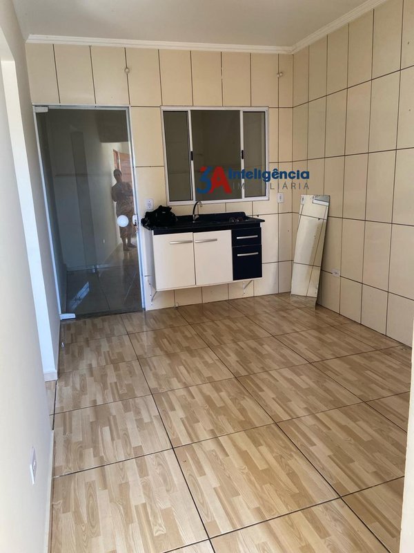 Casa térrea com 2 dormitórios sendo um com suíte, sala, banheiro social, cozinha, área de serviço, quintal amplo e garagem para 3 veículos.