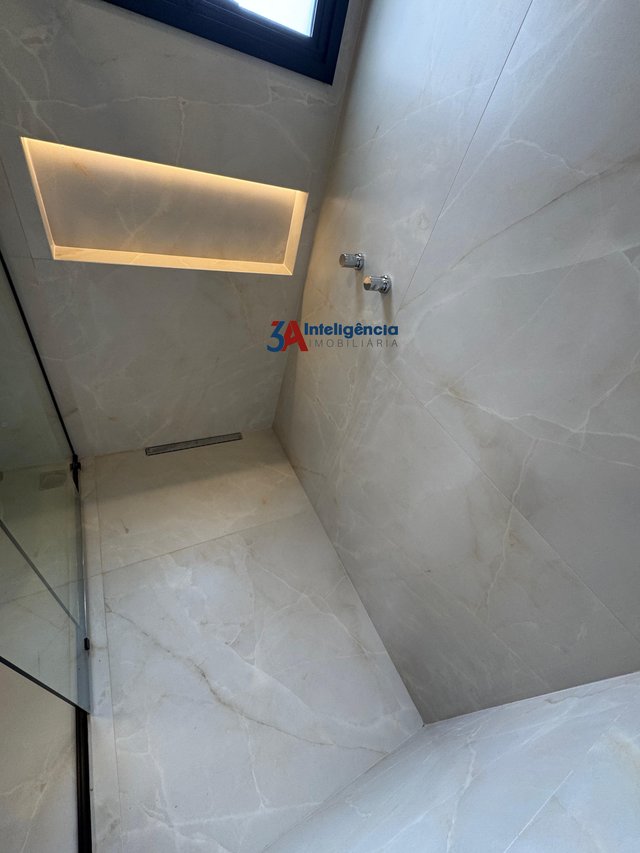 Acabamento fino, com pisos em porcelanato e pintura diferenciada, automação no sistema de iluminação, preparação para aquecimento solar, iluminação projetada e com automação, escada com pé direito duplo e com infraestrutura para fotovoltaica.