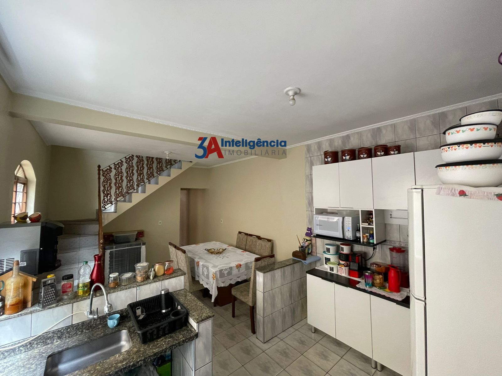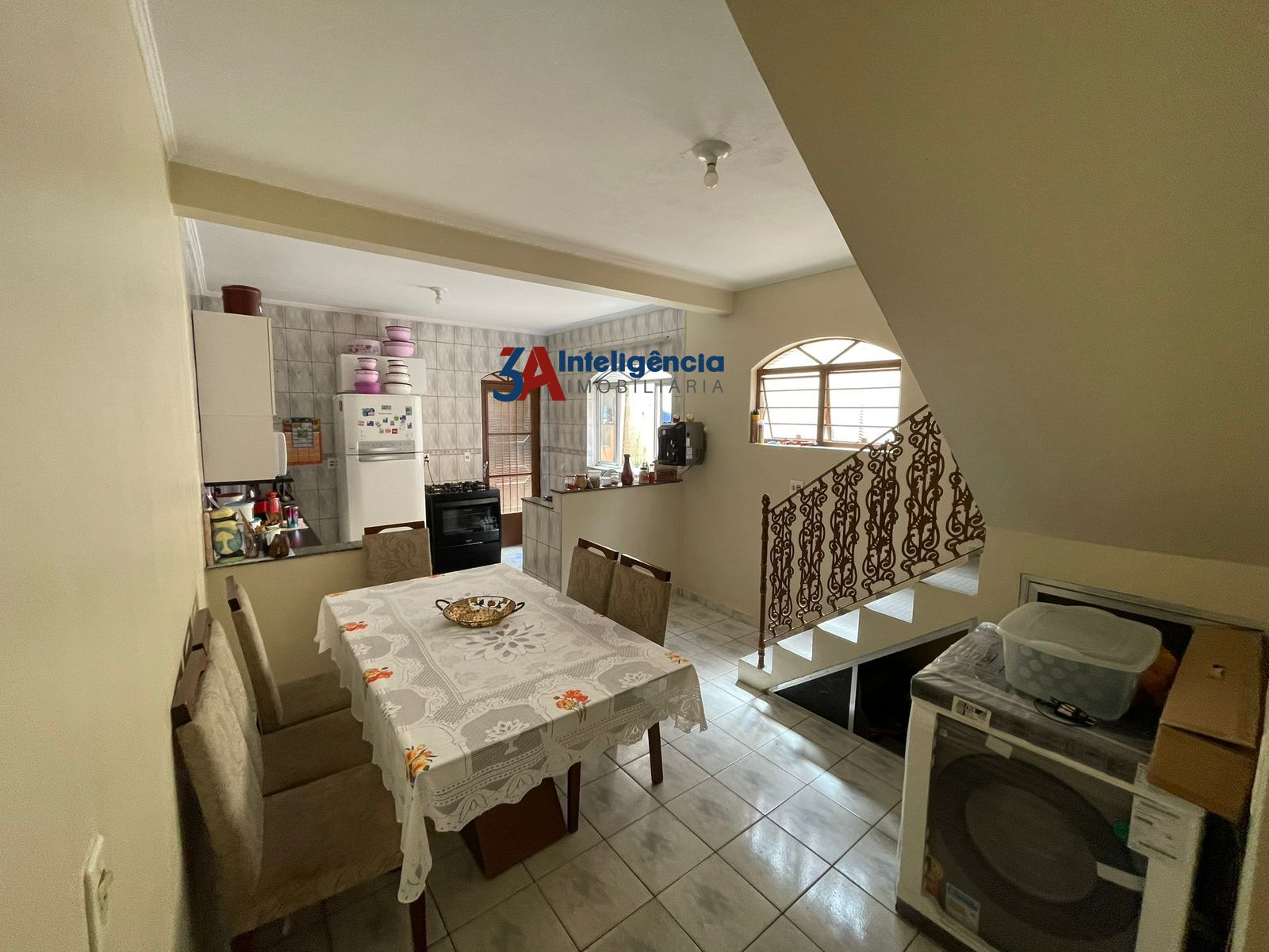 O imóvel possui ampla sala de estar e sala de jantar, cozinha grande, lavanderia coberta, 3 dormitórios, sendo 1 suíte e um banheiro social na parte superior e garagem para 3 carros.